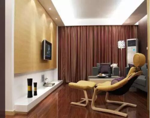 這是將地板搬運(yùn)上墻面的創(chuàng)意設(shè)計(jì),深紅色木質(zhì)地板帶給室內(nèi)沉穩(wěn)、安靜的感覺(jué),而咖啡色的窗簾與地板同屬于冷色系,突出了室內(nèi)的安撫人心作用,而純木的地板做成的背景墻,給沉靜的室內(nèi)風(fēng)格帶了了生動(dòng)質(zhì)感。