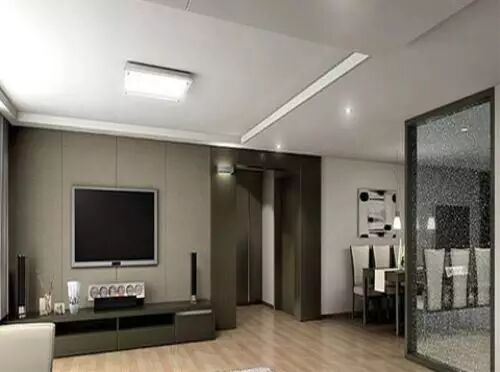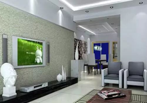 瓷磚鋪貼之后的客廳會(huì)顯得冷硬,而如果墻面處理不當(dāng),則會(huì)造成室內(nèi)環(huán)境生硬,居住舒適度下降。而在上面的背景墻裝修效果圖中,采用近幾年興起的燈光效果,電視背景墻在燈光的熏染下,顯示出朦朧的感覺(jué),軟化了室內(nèi)生硬的氛圍。